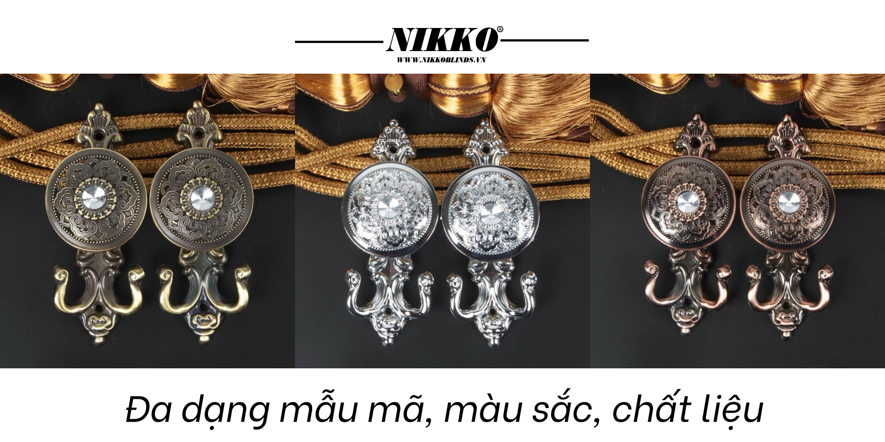 Núm vén rèm cổ điển không chỉ đơn thuần là phụ kiện dùng để cố định rèm cửa mà còn là điểm nhấn trang trí sang trọng, tinh tế cho không gian nội thất. Với sự đa dạng về mẫu mã, kiểu dáng, màu sắc và chất liệu, NIKKOBLINDS mang đến cho bạn vô số lựa chọn để thỏa sức sáng tạo và tô điểm cho ngôi nhà của mình.