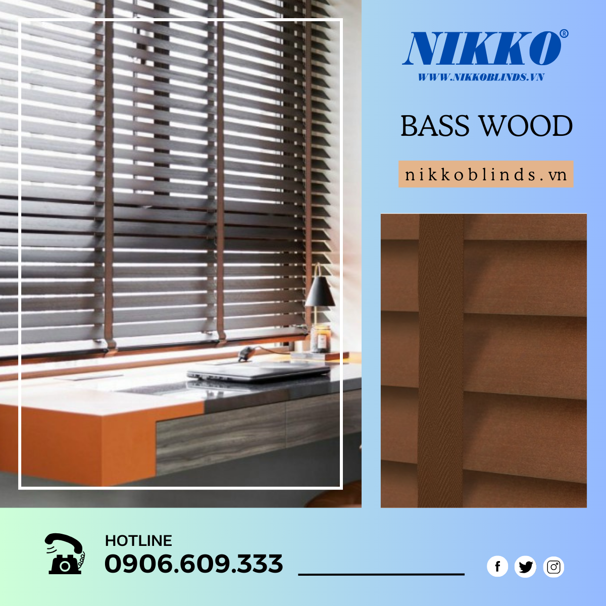 - Rèm gỗ BASS WOOD được làm từ gỗ tự nhiên có độ bền cao, thiết kế bề mặt nhẵn bóng với các đường vân gỗ nhẹ nhàng.